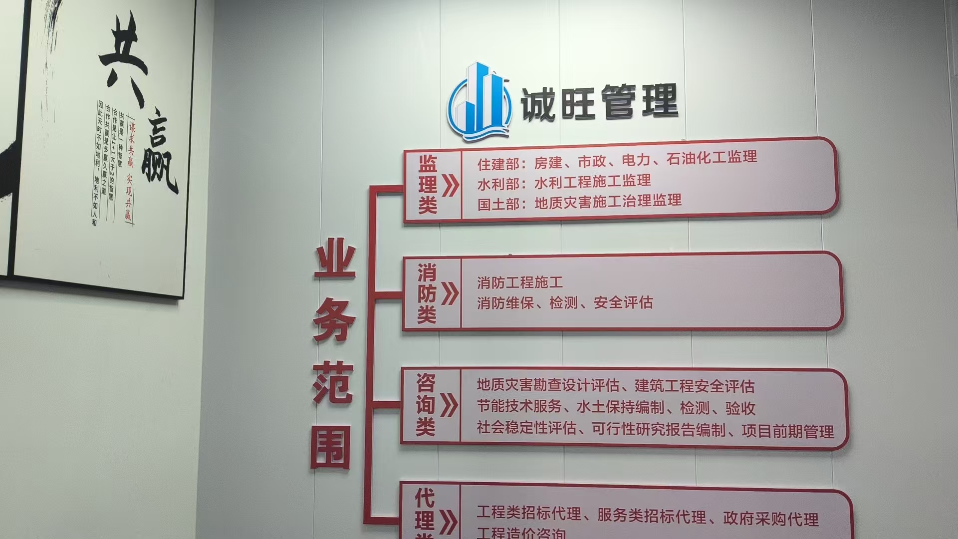 南通诚旺建设项目管理有限公司具有江苏省住房和城乡建设厅颁发:房屋建筑工程、市政公用工程、电力工程监理、化工石油球探手机在线登录资质、施工劳务资质;水利部颁发:水利工程建设监理资质;江苏应急管理部颁发:消防检测/维修保养/安全评估资质;江苏省自然资源厅颁发:地质灾害评估和治理工程勘查设计及地质灾害治理球探手机在线登录资质;江苏省财政厅备案政府采购招标代理;南通建设工程资源交易中心备案建设工程招标代理;南通市政法委系统备案社会稳定性评价;该单位是一家以球探手机在线登录服务,消防技术服务、地质灾害评估和治理工程勘查设计、地质灾害治理球探手机在线登录、水土保持编制、水土保持监测、招标代理服务、造价咨询服务、安全评价服务、节能技术服务、社会稳定性评价及环境咨询服务与一体的专业项目管理企业。